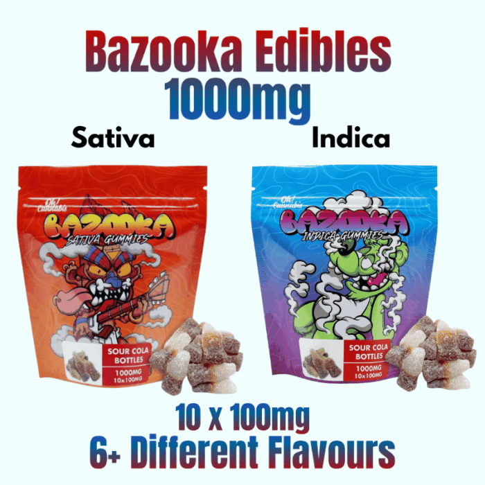 Bazooka 1000mg Gummies – Indica or Sativa, Your Choice! Looking for the ultimate way to relax or energize? Oh! Cannabis Bazooka Gummies have you covered! Choose between premium Indica for a calming, tranquil experience or Sativa for an uplifting, energizing vibe. These delicious gummies are expertly crafted to deliver the perfect balance of flavor and effect, helping you unwind or power through your day.