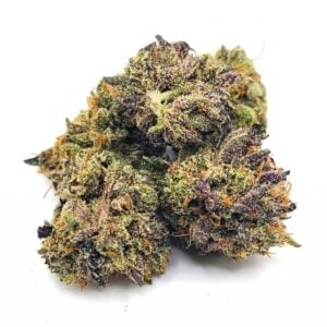Appearance:ย Dense, frosty buds with deep green tones, purple highlights, and a heavy layer of sparkling trichomes.