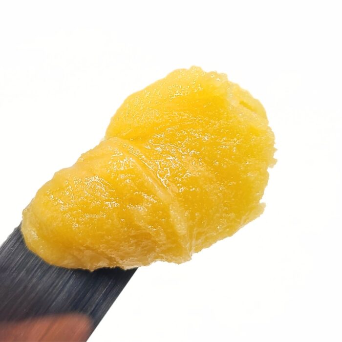 This concentrate stands out with its glossy golden hue and glass-like consistency that breaks cleanly. The texture speaks to expert extraction โ dense, sticky, and fragrant with natural terpenes.