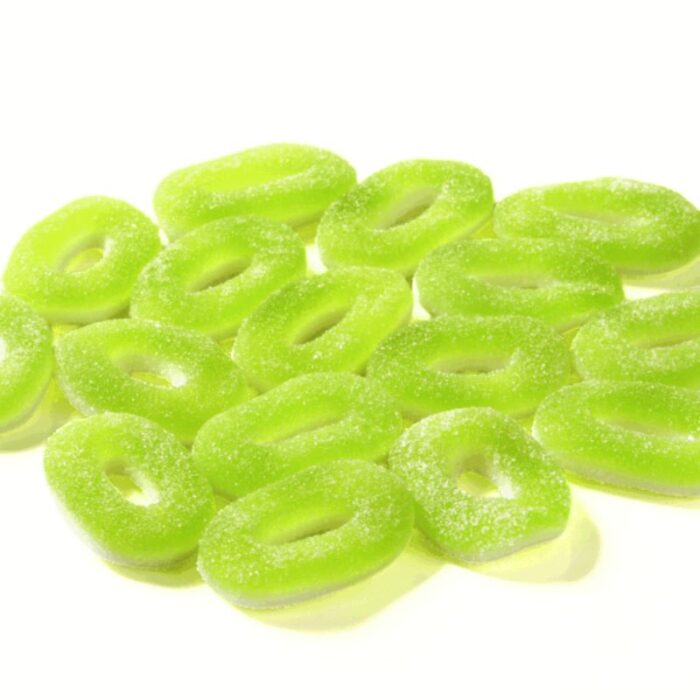 Trolli Apple Rings (600โ€ฏmg THC) โ€“ Classic sour green apple candy rings infused with 100โ€ฏmg full-spectrum THC each. Vegan-friendly, bold flavor, lab-tested for safety.